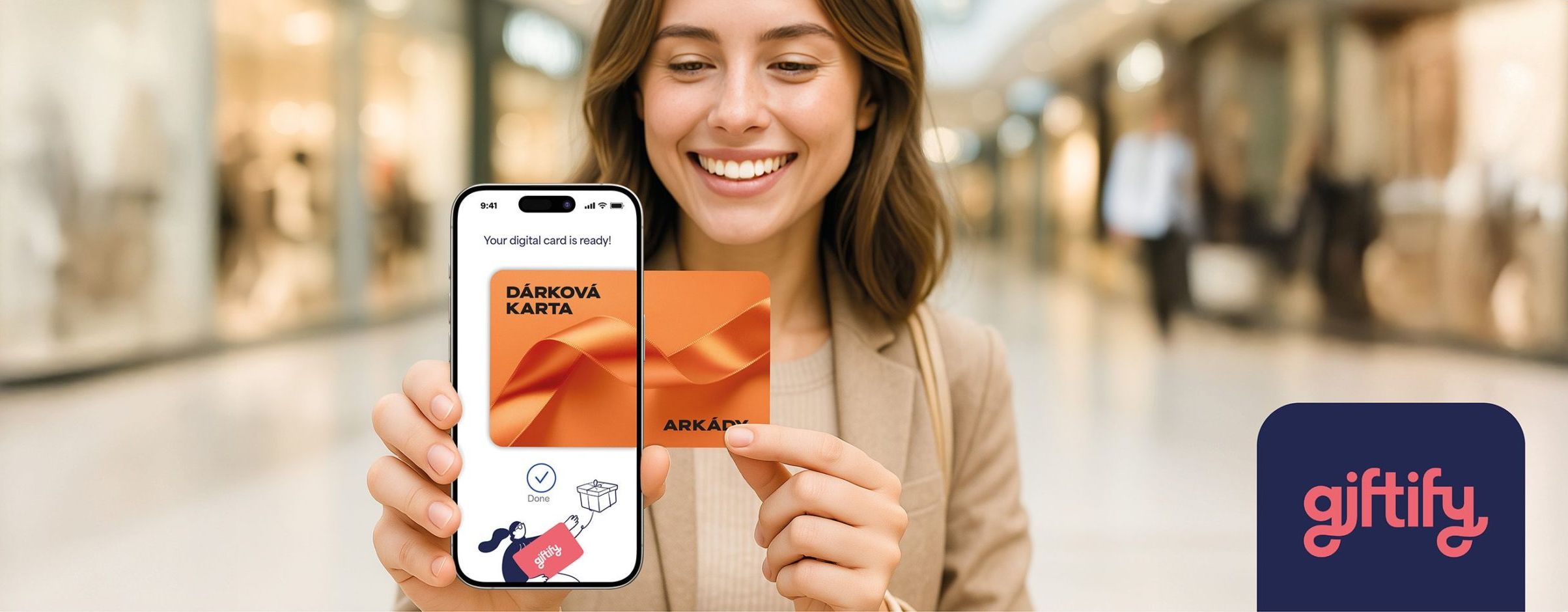Stáhněte si aplikaci Giftify a mějte svou dárkovou kartu vždy po ruce.