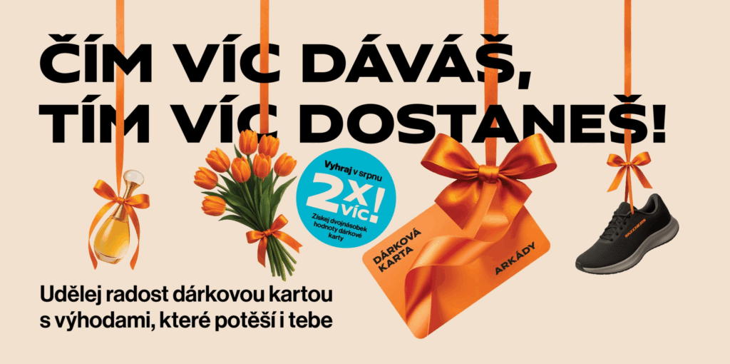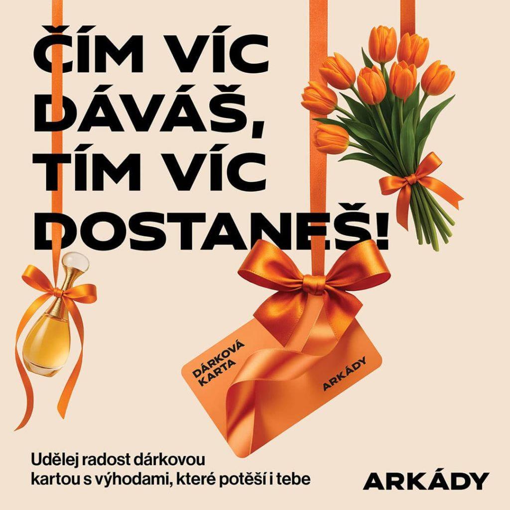 Darujte radost a styl s dárkovou kartou OC Arkády. Perfektní dárek pro blízké, kolegy i partnery – potěší, poděkuje, odmění. Jeden dárek, mnoho možností!