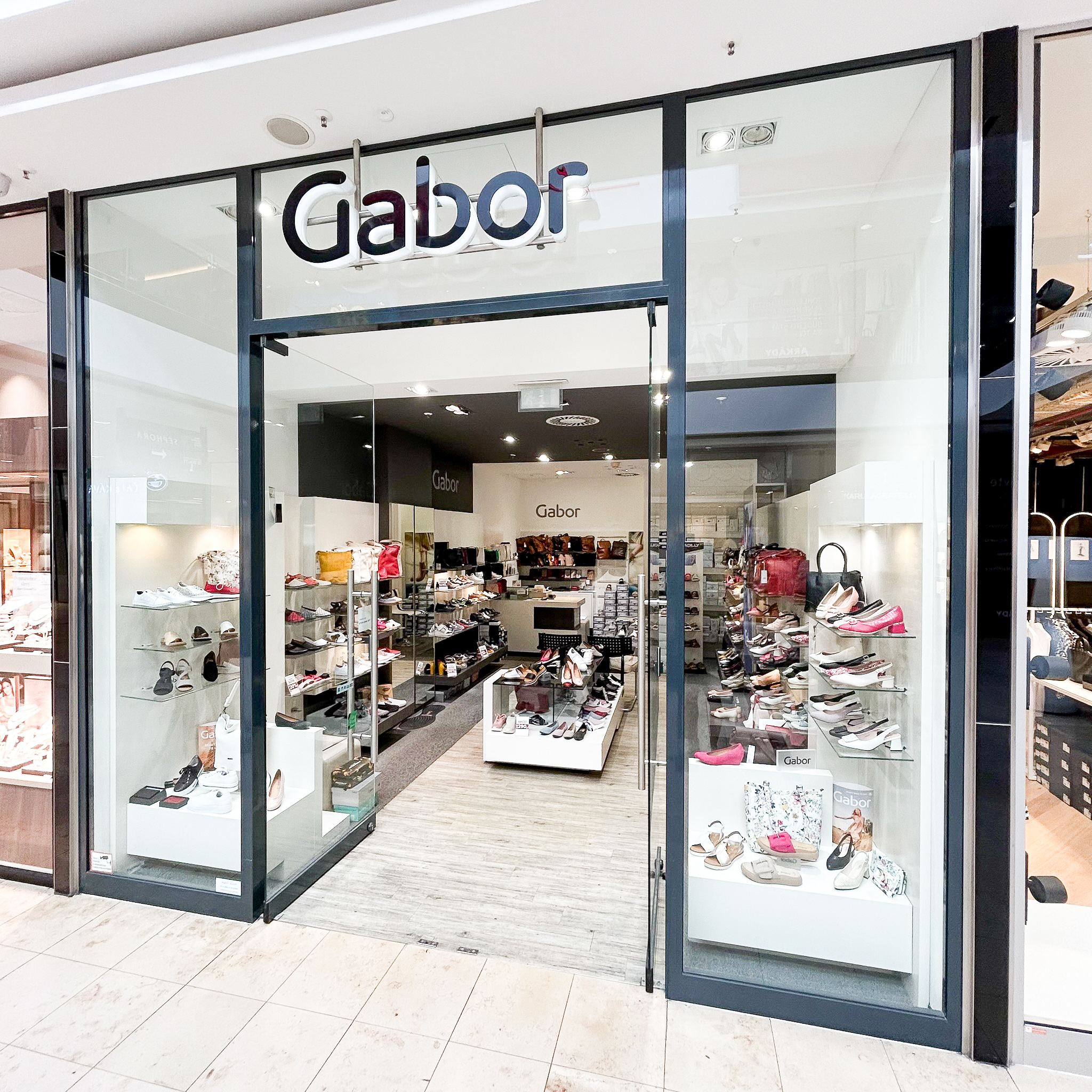 Tato prodejna se specializuje na dámskou značkovou obuv a kabelky německé firmy Gabor.