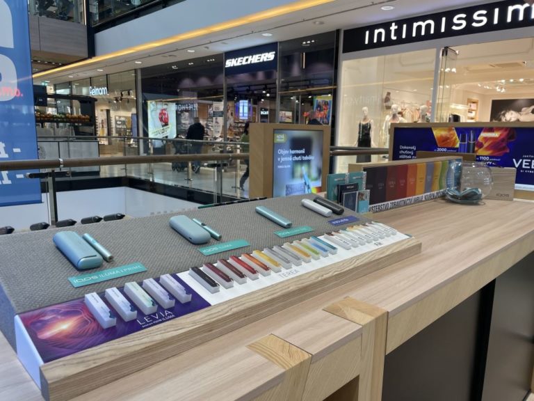 IQOS kiosek nabízí kompletní sortiment IQOS zařízení, tabákových náplní, náplní bez tabáku LEVIA, elektronických cigaret Veev ONE a jednorázových elektronických cigaret VEEV NOW včetně originálního příslušenství.